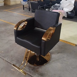 Yeni tasarım altın yuvarlak taban kol dayama siyah deri Metal Salon sandalyesi saç salonu mobilyası berber koltuğu kuaför