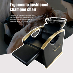 Toptan profesyonel şampuan yatak saç kuaför saç yıkama koltuğu lüks altın kenar kol dayama şampuan sandalye